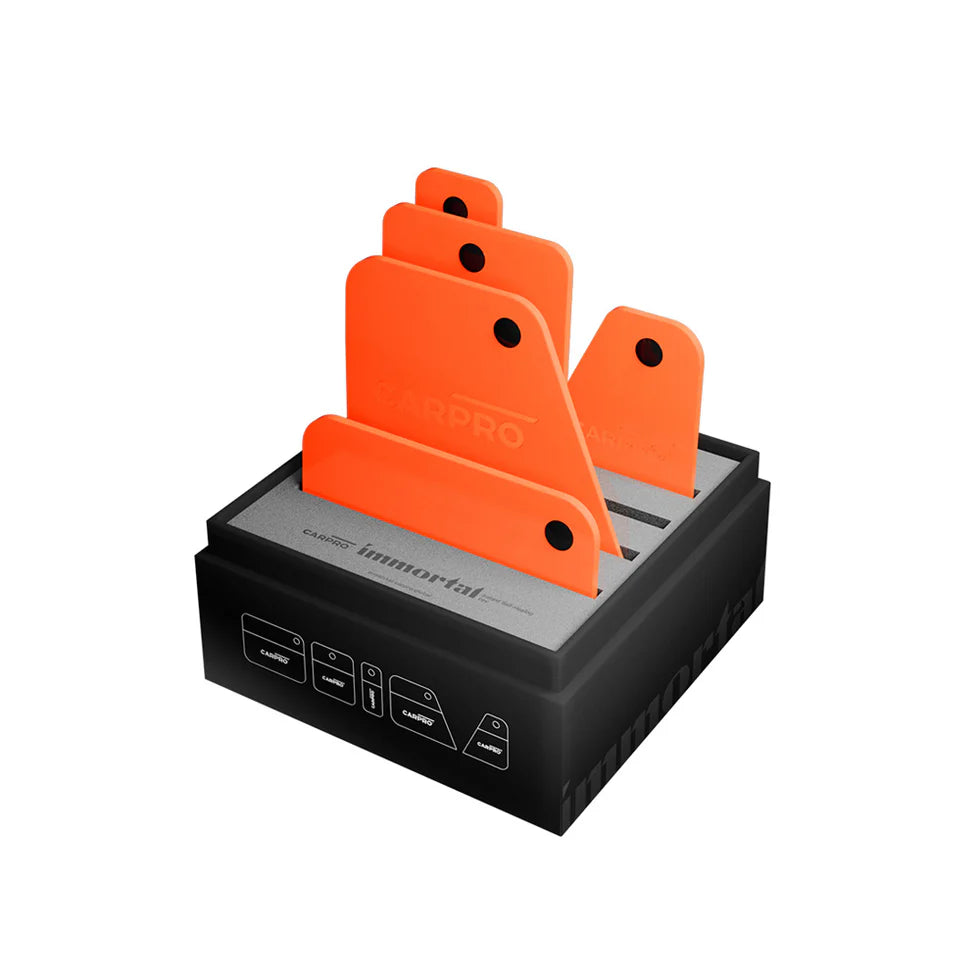 Achieve precise, professional paint protection film (PPF) installation with the CARPRO PPF Rubber Squeegee Kit, designed specifically for use with CARPRO Immortal PPF. This versatile kit includes five specialised squeegees in a range of shapes and sizes, allowing you to work confidently around curves, edges, corners, and tight areas.